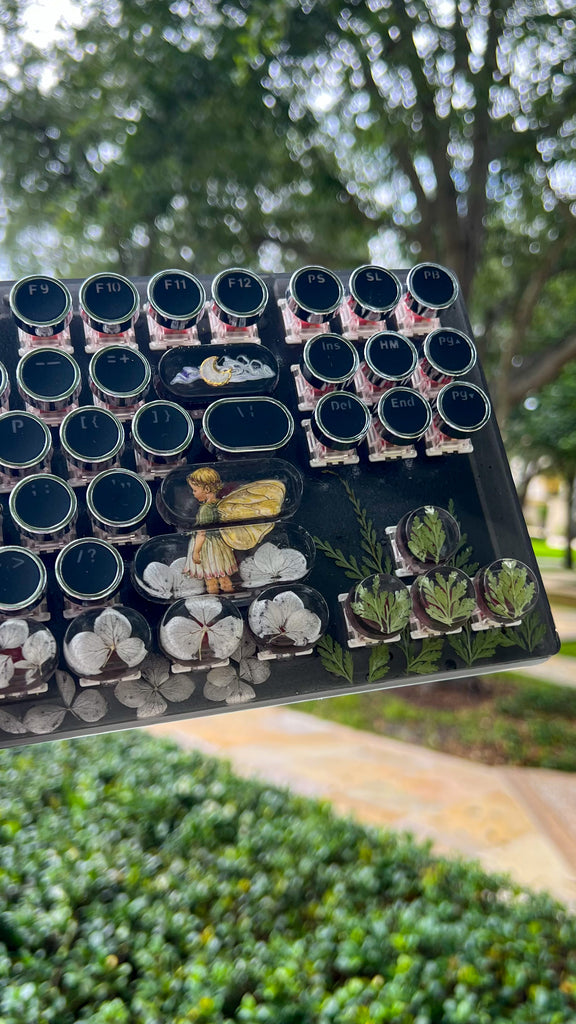 Fairy and Real Flower Typewriter Style Keyboard and wrist rest set (Ready for Assembly)